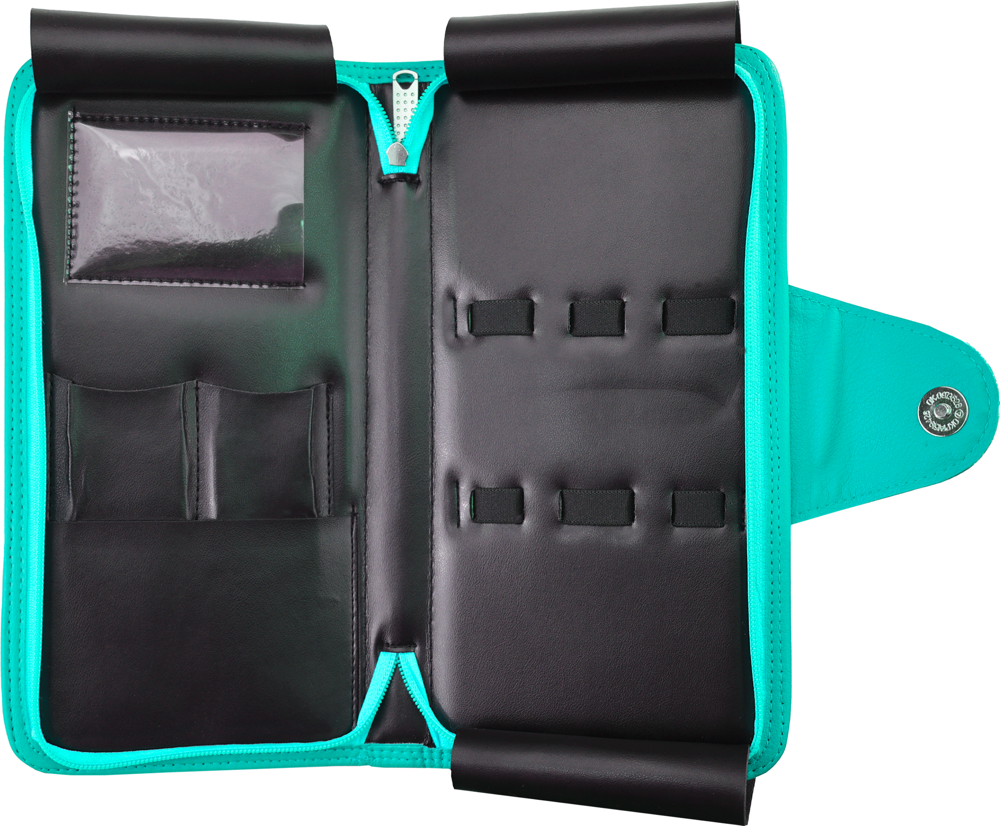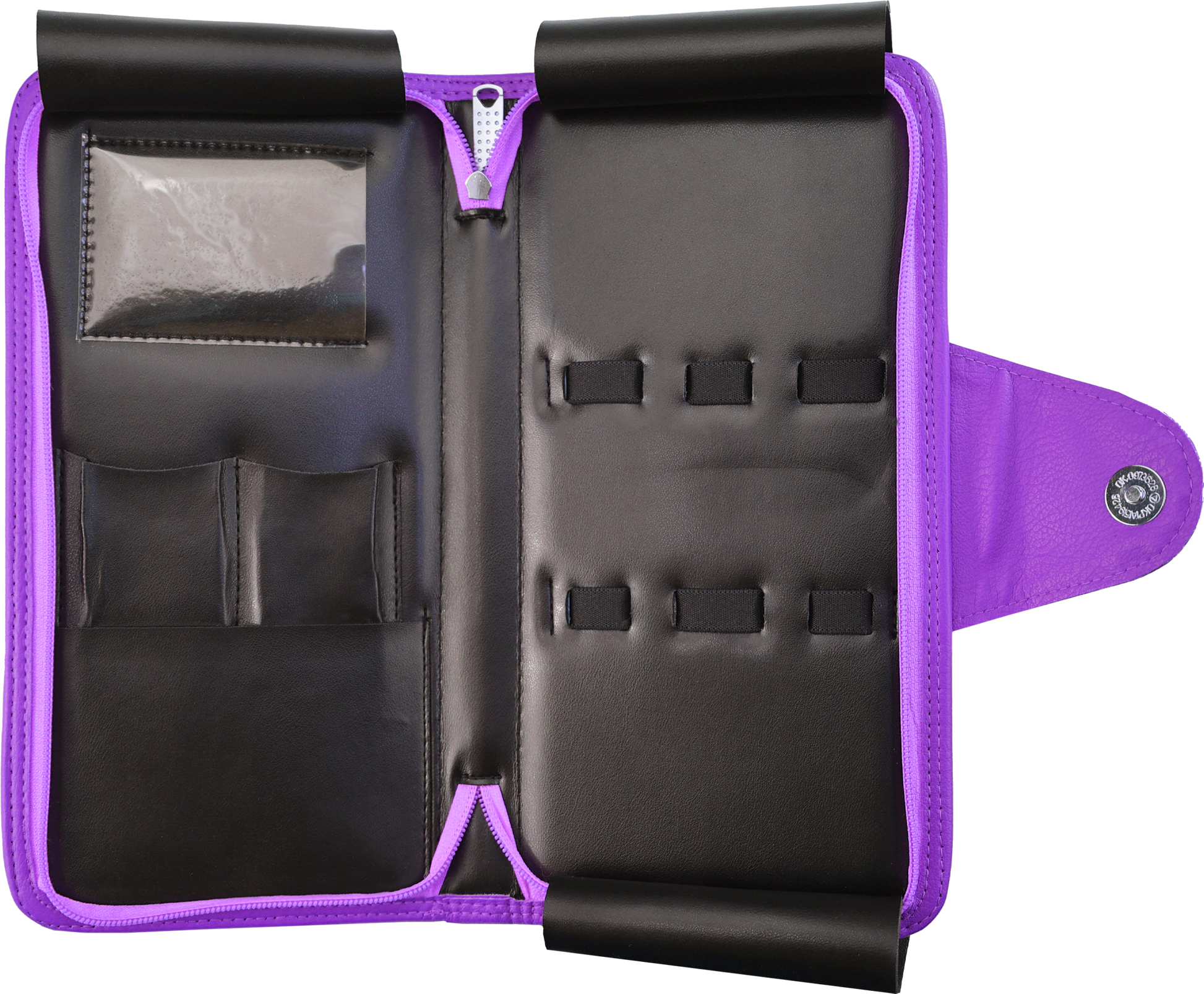 Animal-friendly premium faux leather is supple, durable, and easy to maintain. Holds up to 5 shears 10" or less with small area for combs, razors, phone, etc. Closure is a 3/4 zipper and additional magnetic snap closure. Utilizes three internal flaps to secure and protect instruments.
